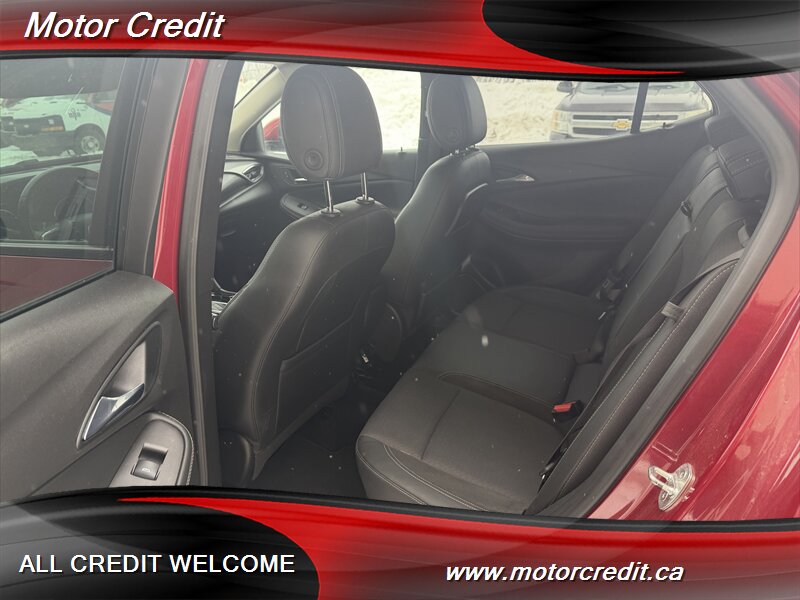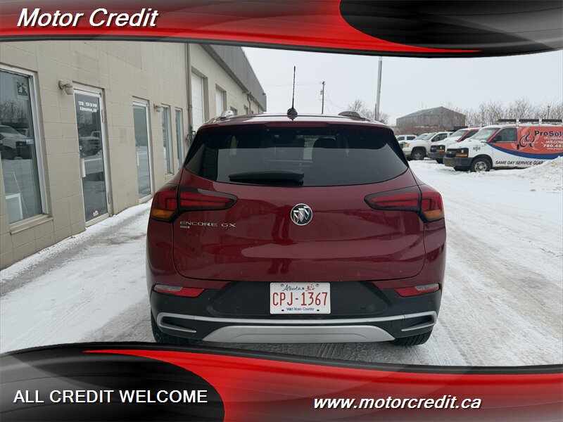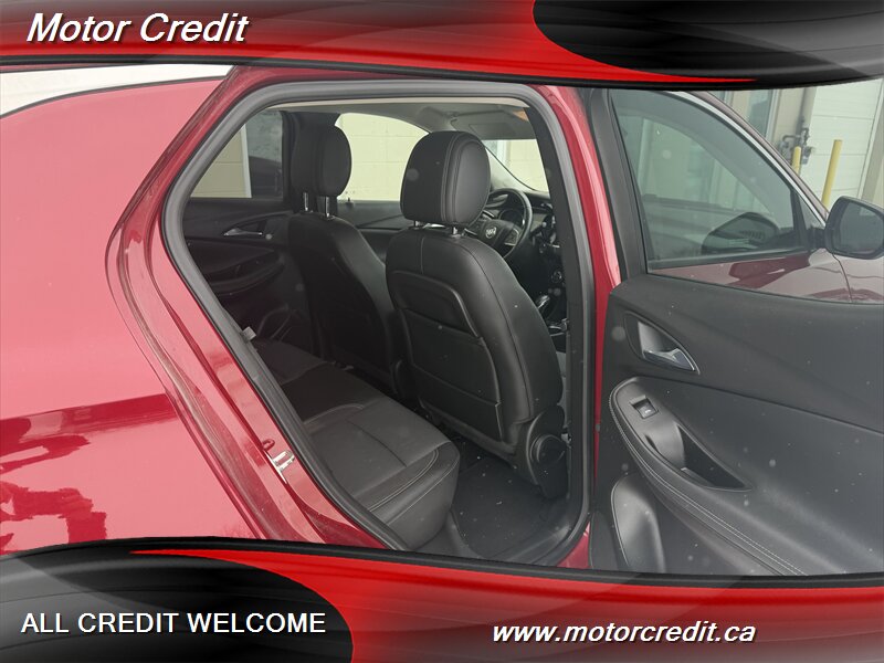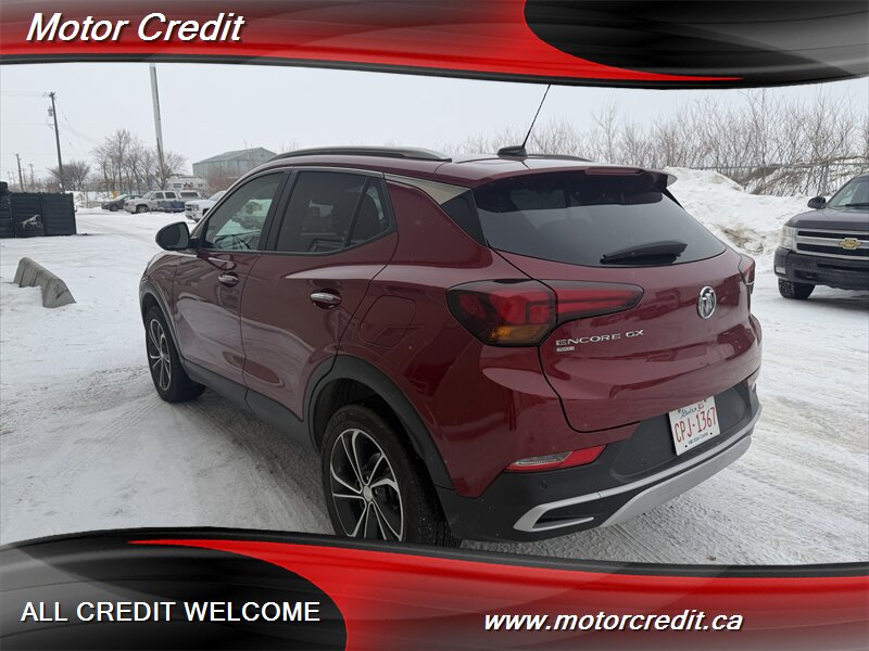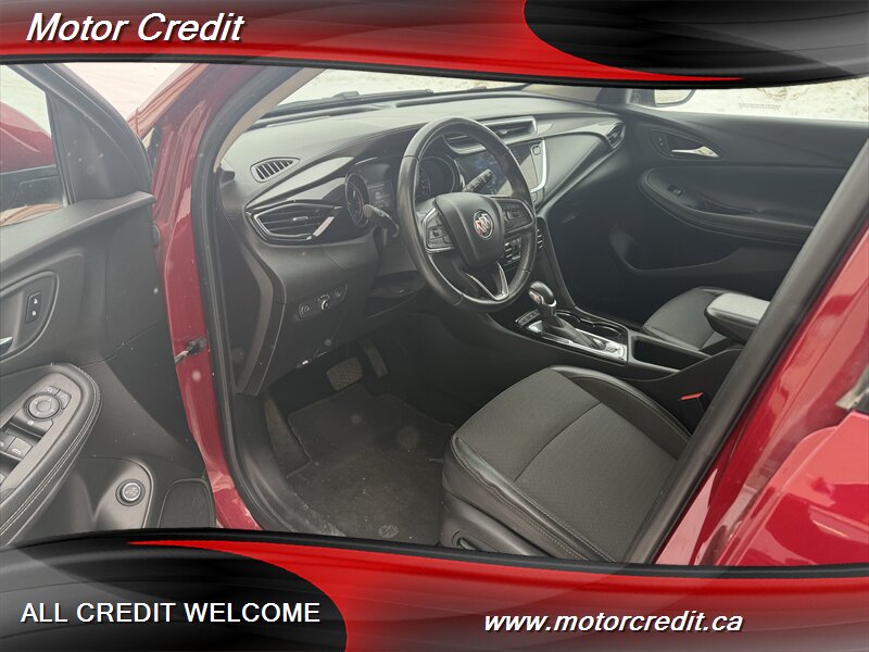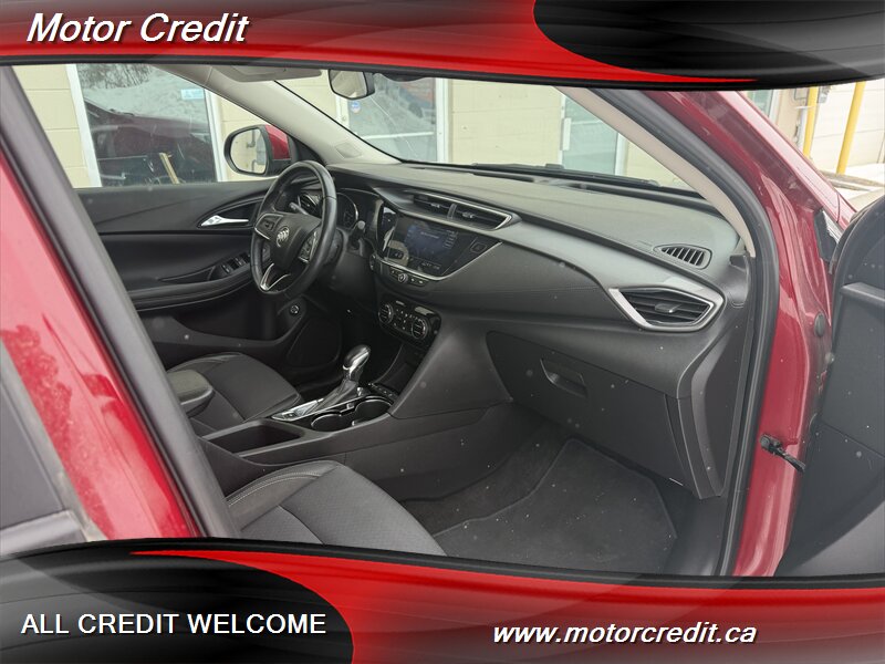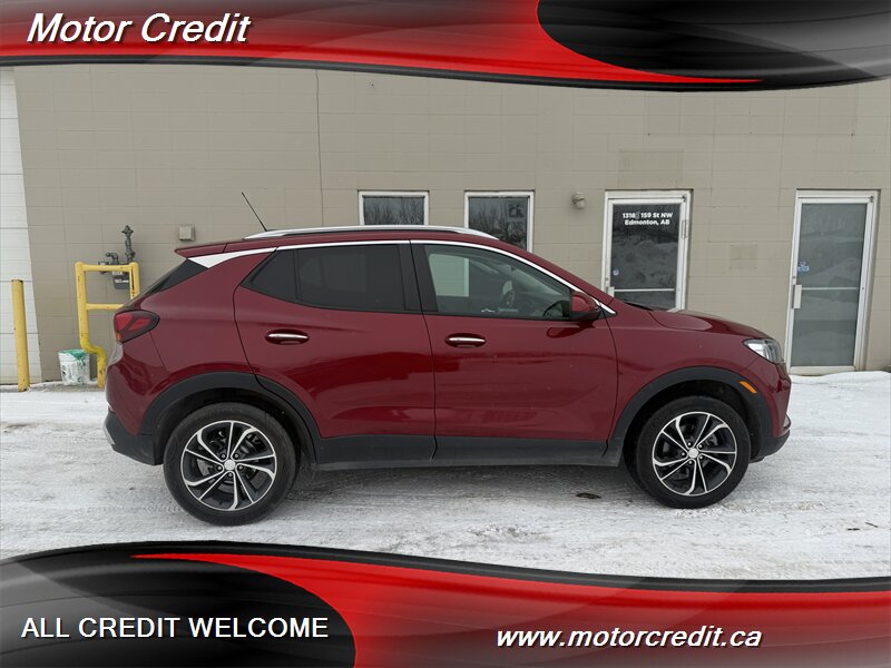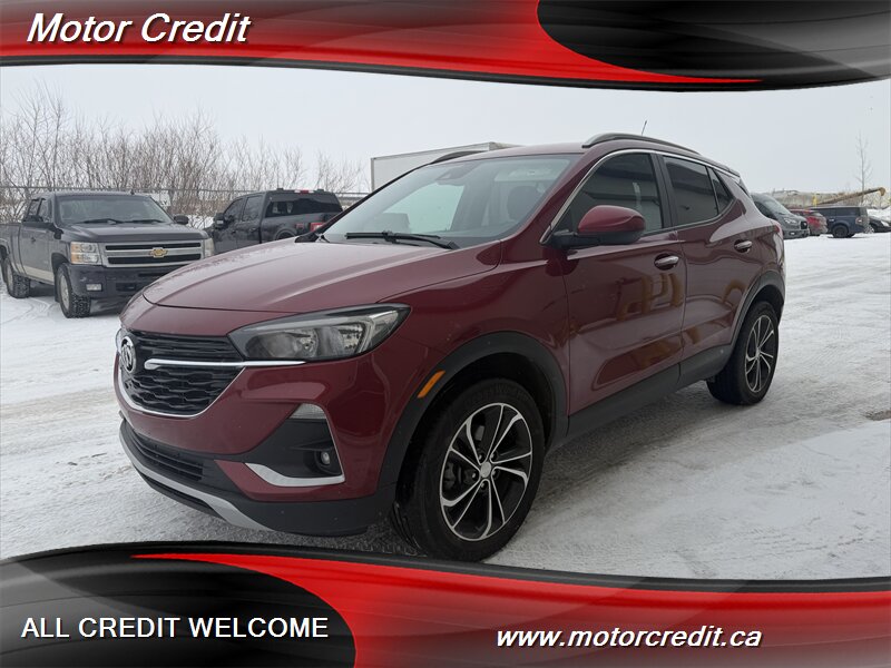 The exterior of this Encore GX is finished in a striking Chili Red Metallic, offering a vibrant and eye-catching appearance. This vehicle is designed with modern lines and a sleek profile, making it a standout on the road. The alloy wheels and LED headlights further enhance its contemporary look.